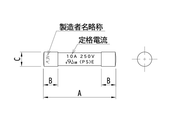 形名 定格電圧(V) 遮断容量(A) 定格電流 溶断特性 本体材料